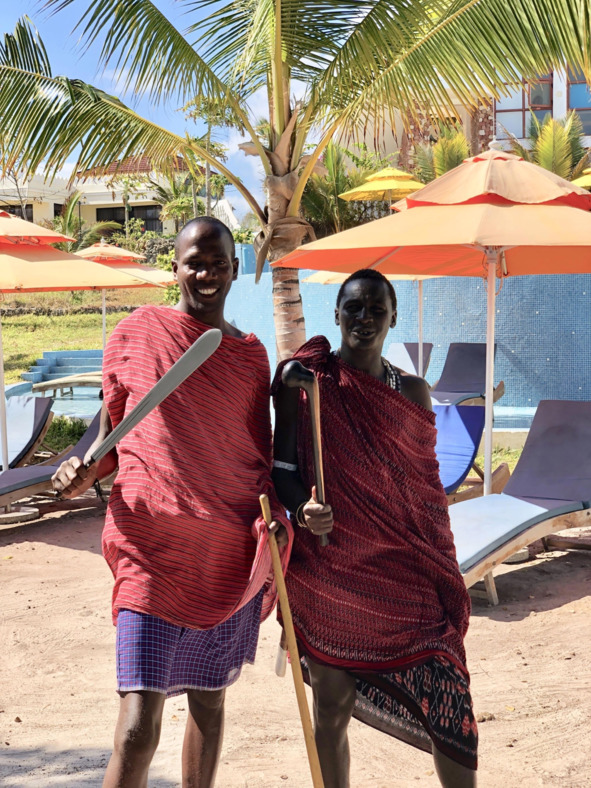 В Танзании народ одевается так же, как в Европе или Америке. Поэтому масаев видно сразу: они ходят только в своей национальной одежде, которую называют «шука». Она чем-то напоминает римскую тогу. У каждого с собой всегда большой широкий нож, небольшая дубинка за поясом и тонкая палка. У нас в отеле они работали охранниками. Но пообщаться с ними получилось не сразу: по-английски они не говорят.