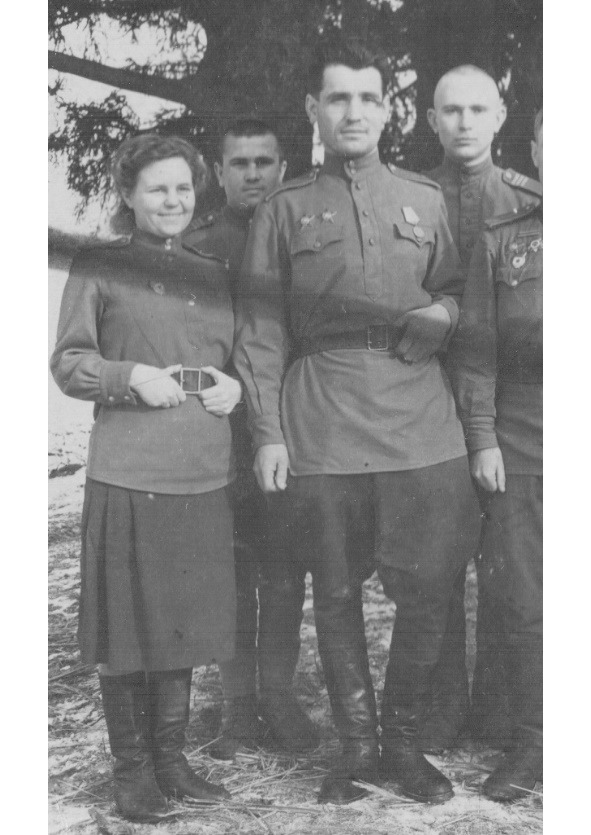 В штабе дивизии мать встретила мужчину, которого горячо полюбила. Это был майор Филимон Рудой, её начальник. После войны он вернулся в Гродно, к семье, и надежды матери на замужество не сбылись. Я знаю отца только по фотографии военных лет. Рядом с подтянутыми, молодцеватыми сослуживцами стоит в расслабленной позе, положив левую руку на ремень, уже немолодой, высокий черноволосый мужчина с нераскрывшейся улыбкой на усталом лице. А был старше своей подруги всего на 3 года.
