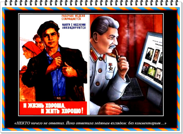 – Это из той оперы, которая называется «Несправедливость, как объективная реальность». Зеркальное отражение этого: в СССР 40 процентов природных ресурсов всей Земли, а живём мы хуже, чем государство – гигант Монако. Йоко, где справедливость?