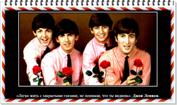 («ВСЕ ВЫ ГЕНИАЛЬНЫ И КРАСИВЫ. Вам не нужен кто-либо, кто рассказывал бы вам, кто вы и какие вы. Вы – те, кто вы есть». Джон Леннон.)