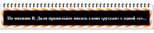 (Почему в тексте слово «по-руски» написано с одной «с»? По мнению В. Даля правильнее писать слово «руский» с одной «с» (Рускiй человек… Рускiй мороз… Здесь руским духом пахнет… Рускiй ум… Рускiй Бог… Руское спасибо. Руская рубаха… Правда Руская; только Польша прозвала нас Россiей, россiянами, россiйскими, по правописанiю латинскому, а мы переняли это, перенесли в кирилицу свою и пишем русскiй! (Толковый словарь живаго великорускаго языка Владимира Даля. С. Петербург, Издание книгопродавца-типографа М. О. Вольфа, 1882, том четвертый, стр. 114.)