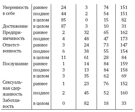 Из этой таблицы видно, что на мальчиков оказывают значительно большее социализационное давление, чтобы сделать их смелыми, агрессивными, уверенными в себе и ориентированными на достижение, тогда как на девочек больше давят в направлении заботливости, послушания, ответственности и сексуальной сдержанности. В позднем детстве это давление, а следовательно, и гендерные различия в поведении усиливаются.