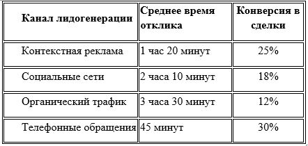 Увеличение доли быстрых откликов (< 1 ч): Назначить приоритетную обработку лидов из каналов с высокой конверсией (например, контекстная реклама и телефонные обращения).
