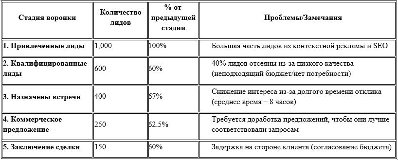 Этот отчет показывает не только текущую эффективность, но и предоставляет данные для улучшения каждого этапа.