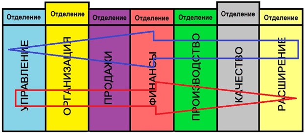 • Отделы. Внутри каждого отделения – три отдела. Например, в производстве это могут быть снабжение, планирование и непосредственно производство.