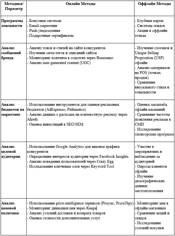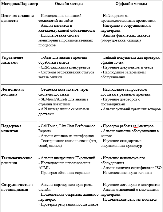 Анализ конкурентов по методике 7P Process (Процессы)