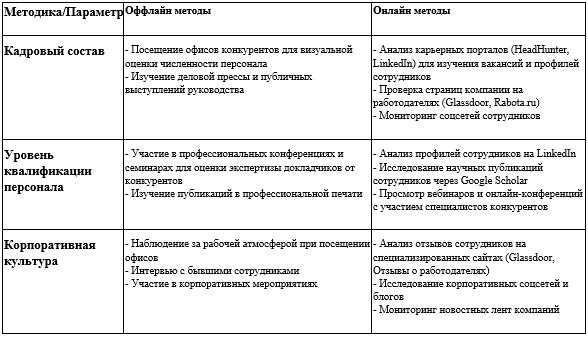 Анализ конкурентов по методике 7P People (Персонал)
