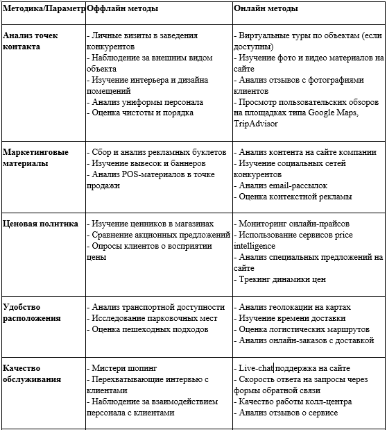 Оффлайн: можно просто ходить и смотреть. Например, притвориться покупателем (это называется «мистер-шопинг»), чтобы понять, как работают продавцы.