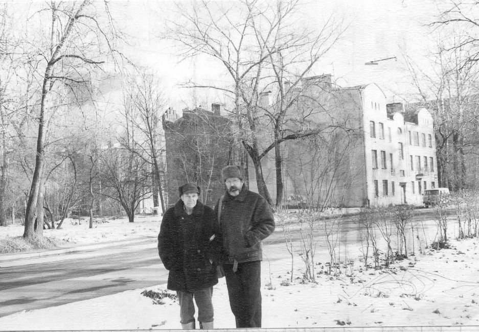 Мы с папой в 2000 году напротив места, где был дом № 5 (за нашими спинами, на той стороне Константиновского проспекта).
