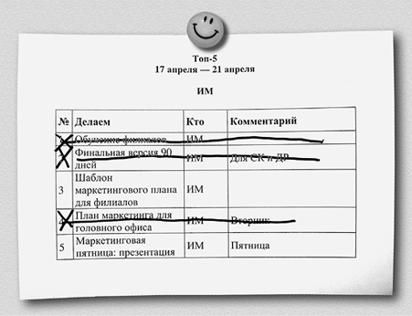2. Через неделю, продемонстрировав собственный экземпляр, потребуйте от ваших подчиненных их план «Топ-5».