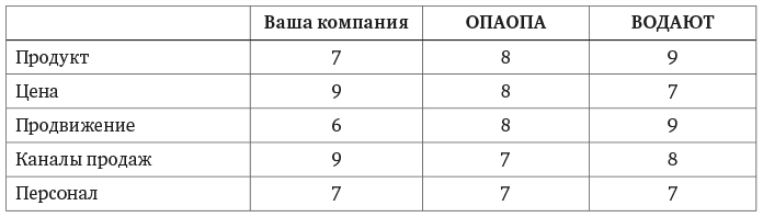 Затем каждый из участников должен по 10-балльной шкале дать оценку своей компании и двум самым «злостным» конкурентам (их необходимо определить заранее, чтобы сравнение было одинаковым).