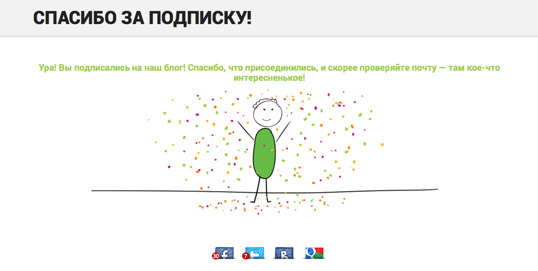 Страница «Спасибо» – страница, которая появляется после того, как посетитель сайта выполнил желаемое для вас действие, например подписался на обновления вашего блога, прошел опрос или скачал материал.