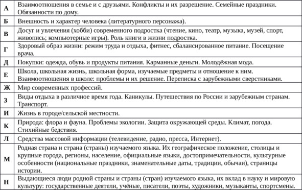 Таблица 4. Детализированное тематическое содержание речи»
