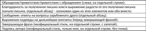 Все письма имеют общие фразы во всех разделах. Список возможных вариантов, принимаемых на экзамене (по материалам ФИПИ), приводится ниже: