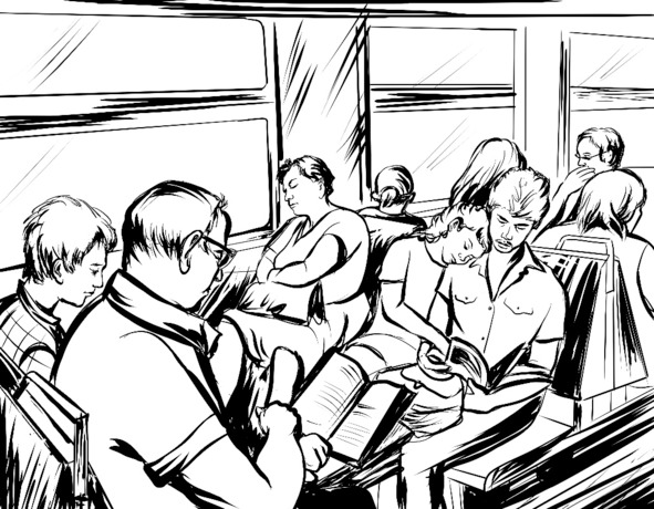 Пассажиры с тоской смотрели на узкие, открытые окна. В них врывался тёплый воздух, и они терпеливо потели, вытирая мокрые лица рукавами футболок или просто ладонью. Все места были заняты, но в проходах никто не стоял. Это пространство занимали многочисленные вёдра с красными помидорами и жёлтыми яблоками, большие сумки с вещами и наскоро собранными букетами, а также разный другой дачный хлам, что вынуждало новых пассажиров осторожно лавировать между ними в тщетной попытке ничего не задеть, не опрокинуть и просто не упасть на всё это вещевое изобилие сверху, вызвав у одних смех, а у других – негодование.