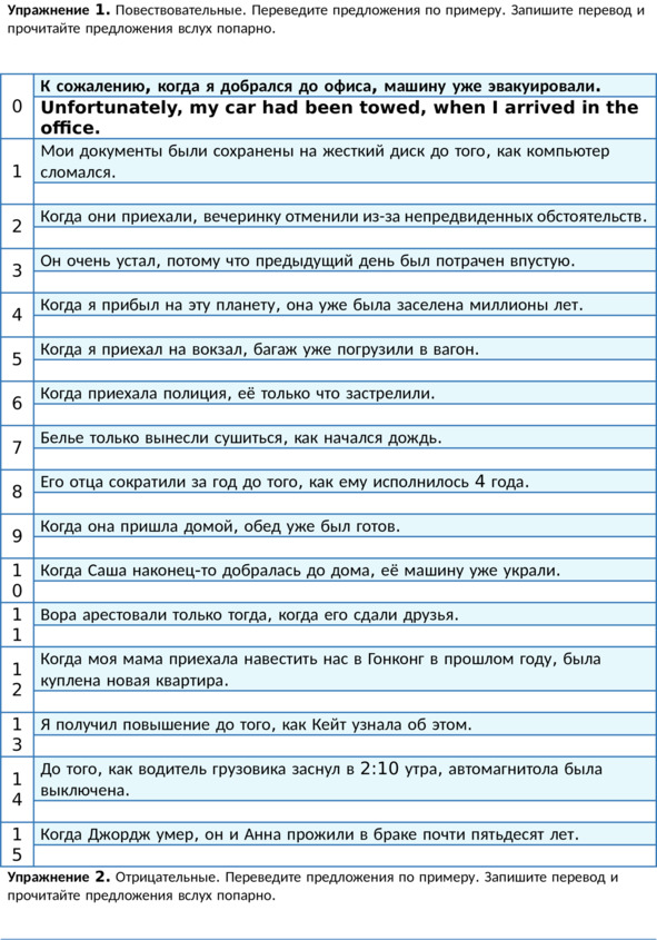 ЗАДАНИЕ 1. Past Perfect с союзами when, before и because.