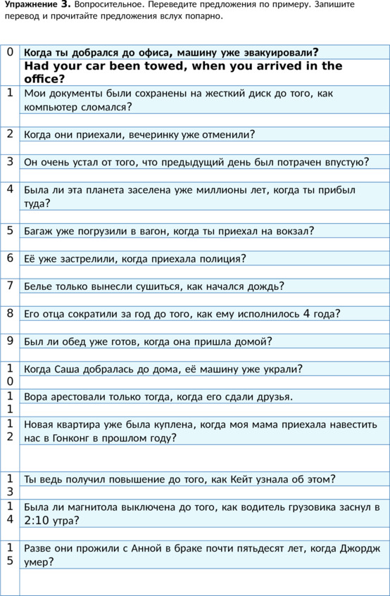 8—1. PAST PERFECT. БАЗОВЫЕ УПРАЖНЕНИЯ
