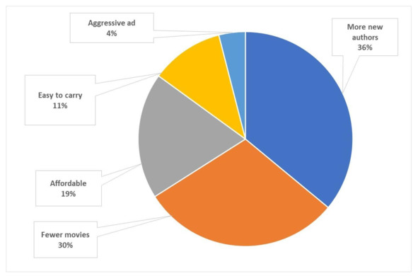 38.2 Imagine that you are doing a project on why teenagers in Zetland started buying more books. You have found some data on the subject – the results оf survey (see the pie chart below).
