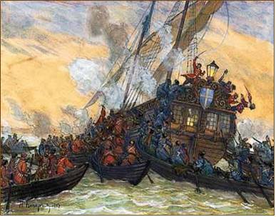 Царь Петр в своих Азовских походах (1695 и 1696 годов) тоже активно и умело использовал морскую силу и опыт казаков.