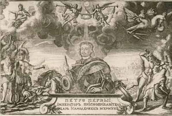 Зубов Алексей. Заглавный лист из «Книга Марсова или воинских дел от войск царского величества российских» с портретом Петра I. 1713 г