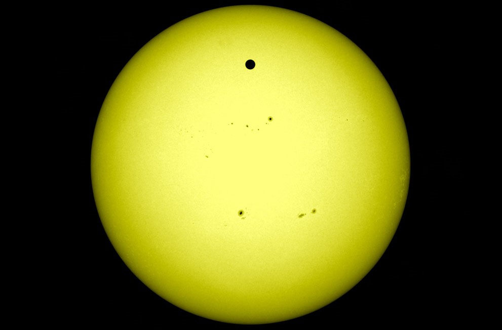 Черный кружок в верхней части солнечного диска – это Венера. Маленькие черные отметины – это так называемые «солнечные пятна», о которых разговор нужно вести отдельно.