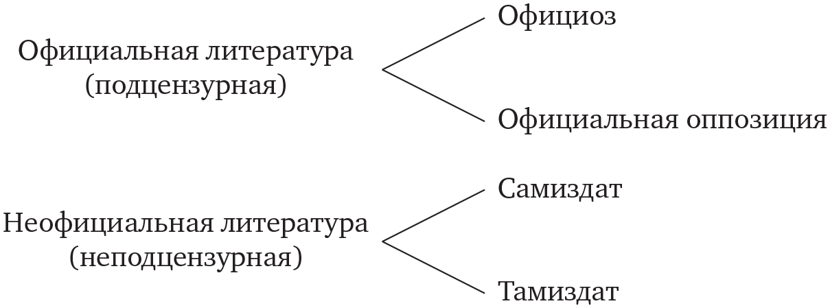 Внутри по-военному четкой и отчасти даже писанной системы (председатель союза, секретари союза, главный редактор и пр.) существовало менее очевидное, но ясное для всех посвященных двухэтажное деление на «с лестью преданных», «автоматчиков партии», «верных слуг режима» и «допущенных к столу» скрепя сердце, на голый официоз и официальную (в смысле – официально публикуемую, проходящую цензуру), но внутренне оппозиционную литературу.