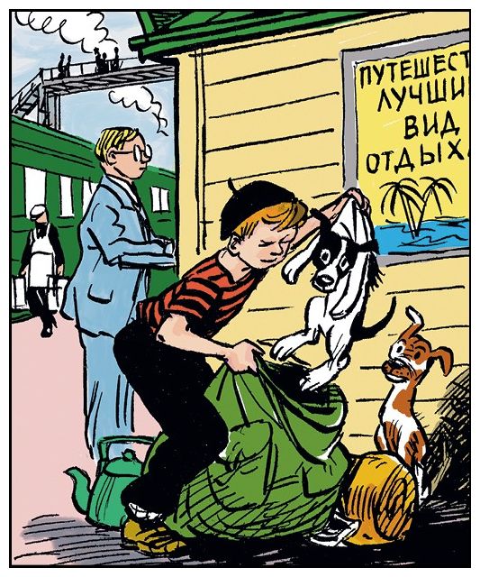 – Некогда мне намордники вам покупать… Поезд того и гляди отправится! Полезайте-ка вы, друзья мои, в рюкзак!