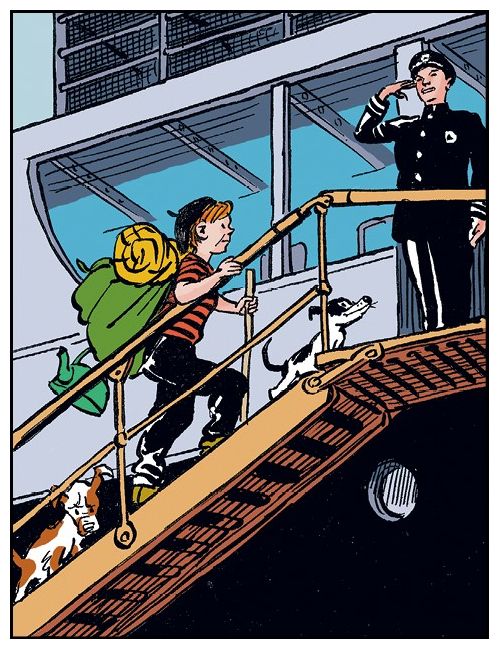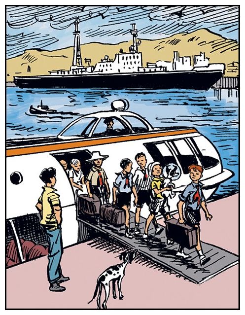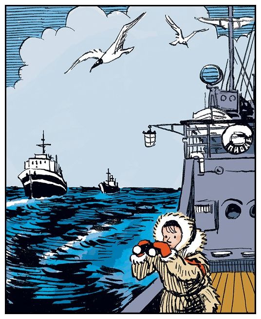 И друзья поспешили в порт, чтобы не опоздать на ледокол. Они правильно сделали, что поторопились. Корабль стоял уже на всех парах, готовый к отплытию. Петя, Мик и Мук вбежали по трапу на борт.