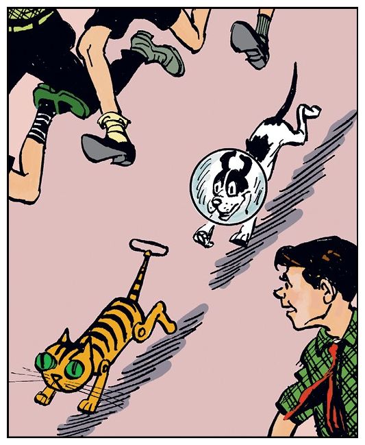 И тут за кошкой, блестя «скафандром», появился Мик. Он уже готов был пробежать мимо, но Петя воскликнул: