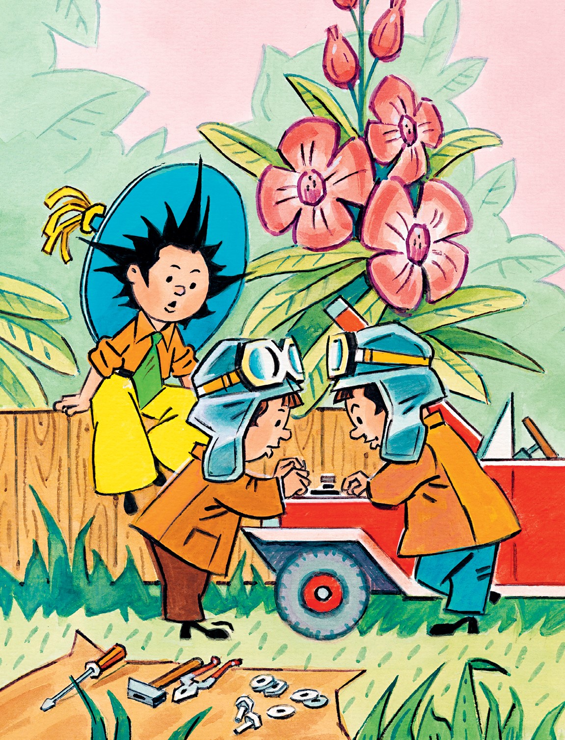 – Хватит. Пора нам отдохнуть. А Незнайка пусть сбегает к Пилюлькину, возьмёт сироп и всё смажет. Он же любит кататься на автомобиле, вот пускай и подольёт сиропчика в мотор.
