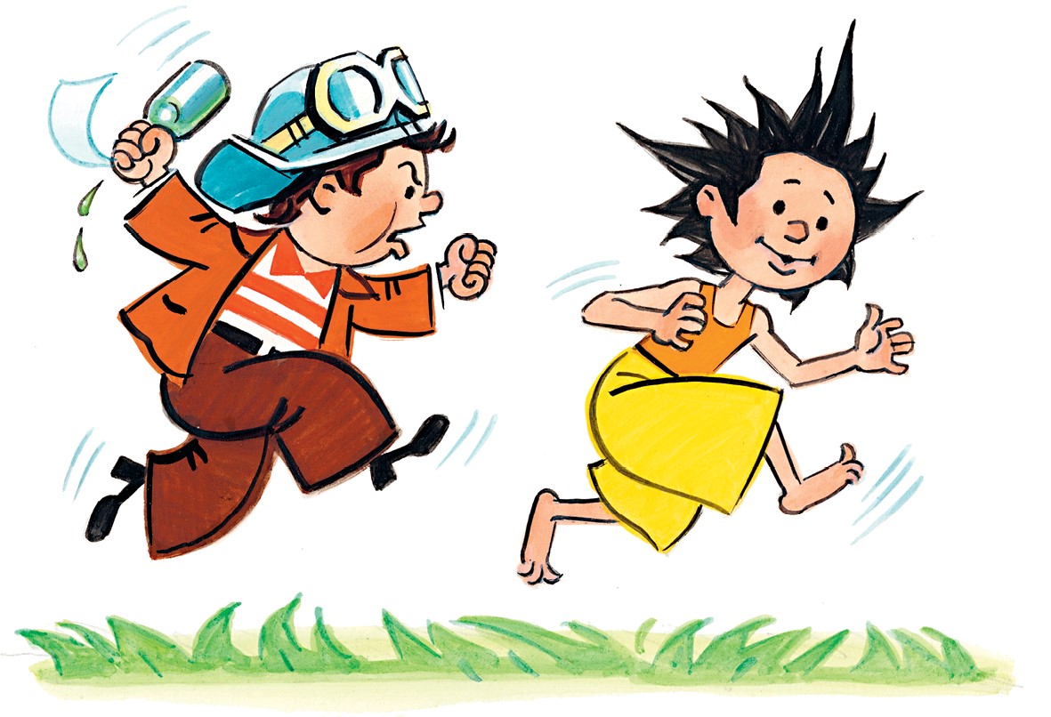 Такое объяснение не устроило Шпунтика. Он ринулся к Незнайке, размахивая бутылкой с остатками зелёнки:
