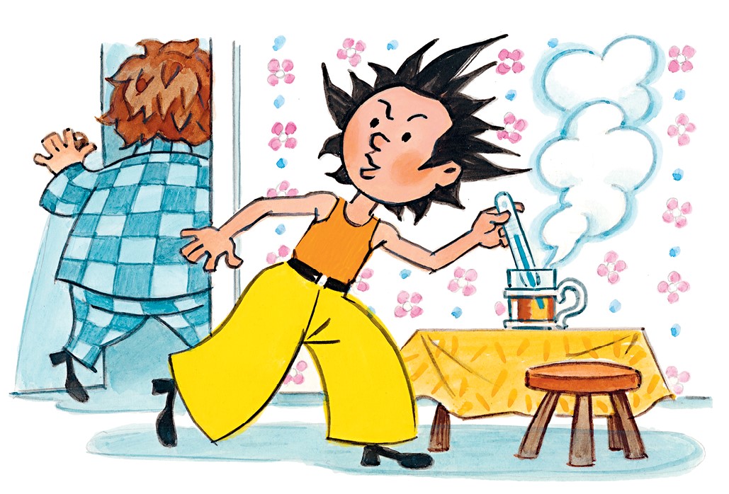 Сиропчик пошёл к Тюбику, а Незнайка тут же окунул градусник в горячий чай и подумал: «Температуру под сорок сделаем!»
