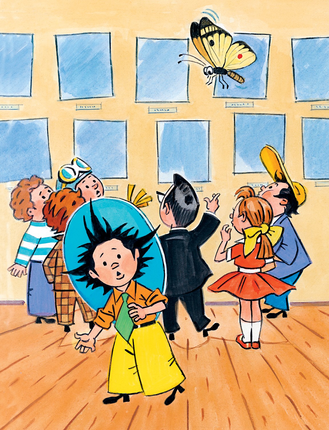 Микроша уехал, а Незнайка тут же отправился на выставку.