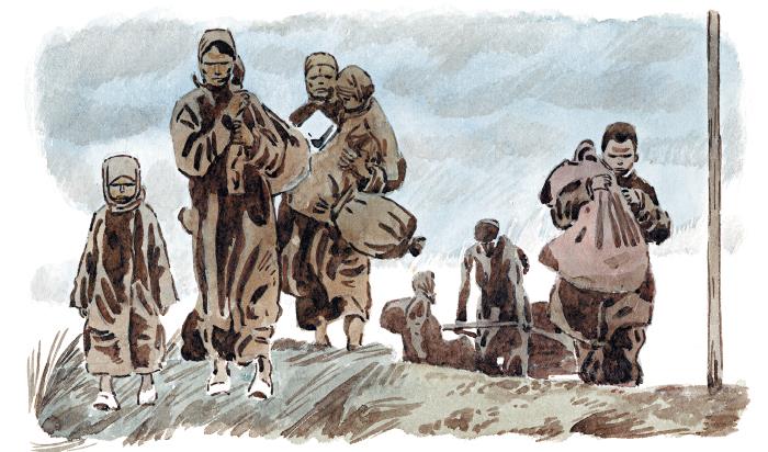 – Здесь живёт портниха? У меня в деревне есть шерсть, чтобы вязать носки. Меняю на муку.