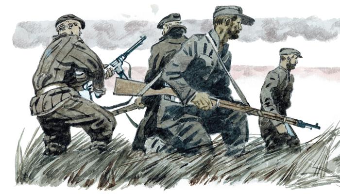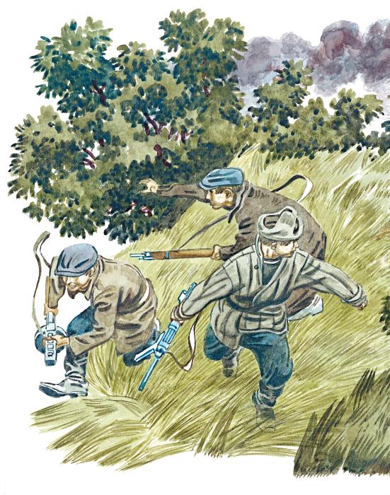 – Без приказа не стрелять! Подпустим метров на пятьдесят, – шепчет командир.