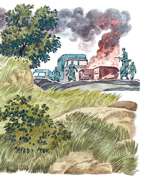 Степан и Коля бросились к лесу, а Валя – наперерез машинам. И с криком «За Родину!» точно метнул гранату.
