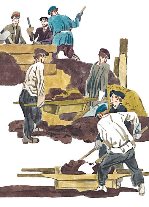 Сначала казалось, что немцев вот-вот остановят где-то далеко на западе. Но уже скоро стало ясно, что враг подходит к Москве. И при военкомате организовали добровольческий истребительный батальон. А командиром назначили директора школы Ивана Николаевича Назарова. Эти формирования создавали для обороны важных объектов от вражеских диверсантов или парашютного десанта. В 1941 году в такие батальоны объединили двести пятьдесят тысяч добровольцев. И двадцать пять тысяч из них стали позже партизанами. Занятия там проходили вечером, после учёбы (Толя и его друзья пошли в девятый класс) и работы – школьники помогали взрослым строить военную дорогу и оборонительные укрепления. Каждый день Толя, Витя, Юра и Володя таскали тяжёлые носилки с песком и щебнем.