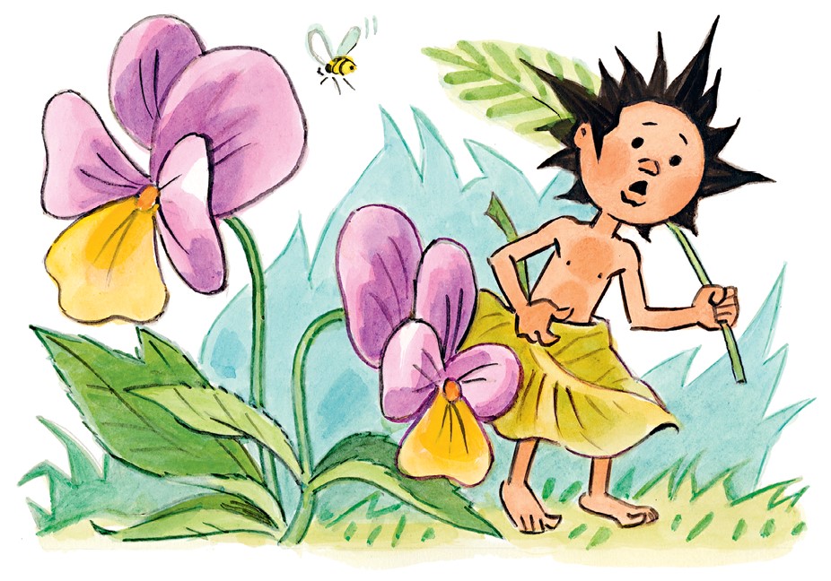 Он нашёл подходящий лопух, оторвал лист и обернулся им, как большим полотенцем. В руку взял травинку – отгонять комаров и решил подкрасться поближе к лужайке, где на праздник собрались малыши и малышки.