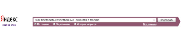 Например, «Окна ПВХ в Москве» – только этот ключевой запрос в виде фразового соответствия будет использован ПС.