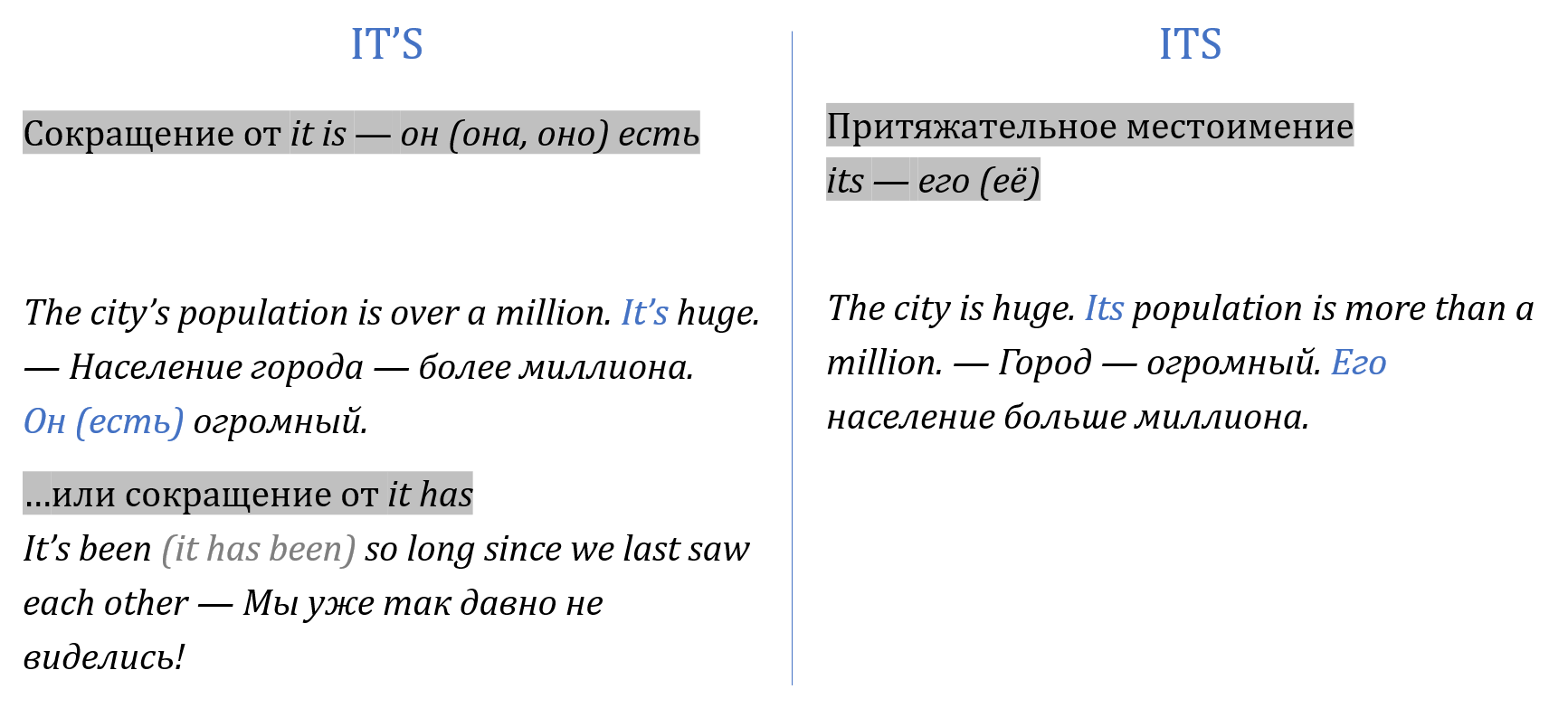 * – Подобное сокращение чаще используется для сокращения вспомогательного глагола has… и реже используется для сокращения смыслового глагола has,..