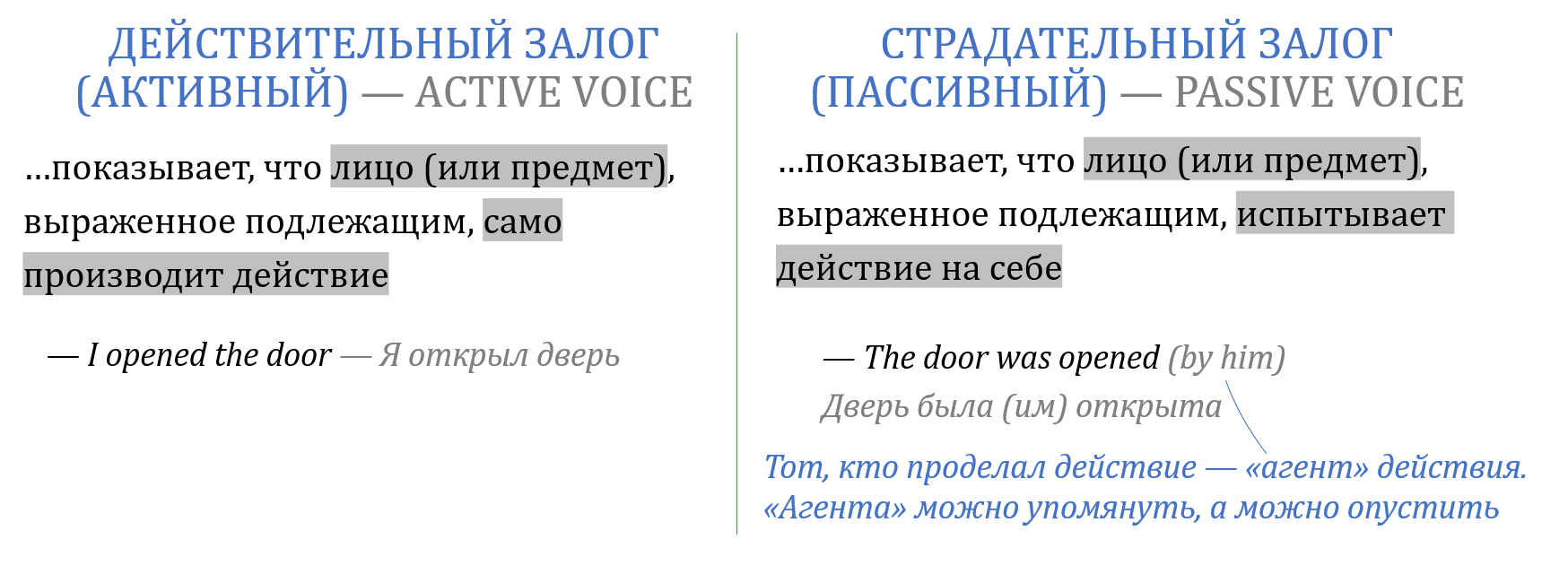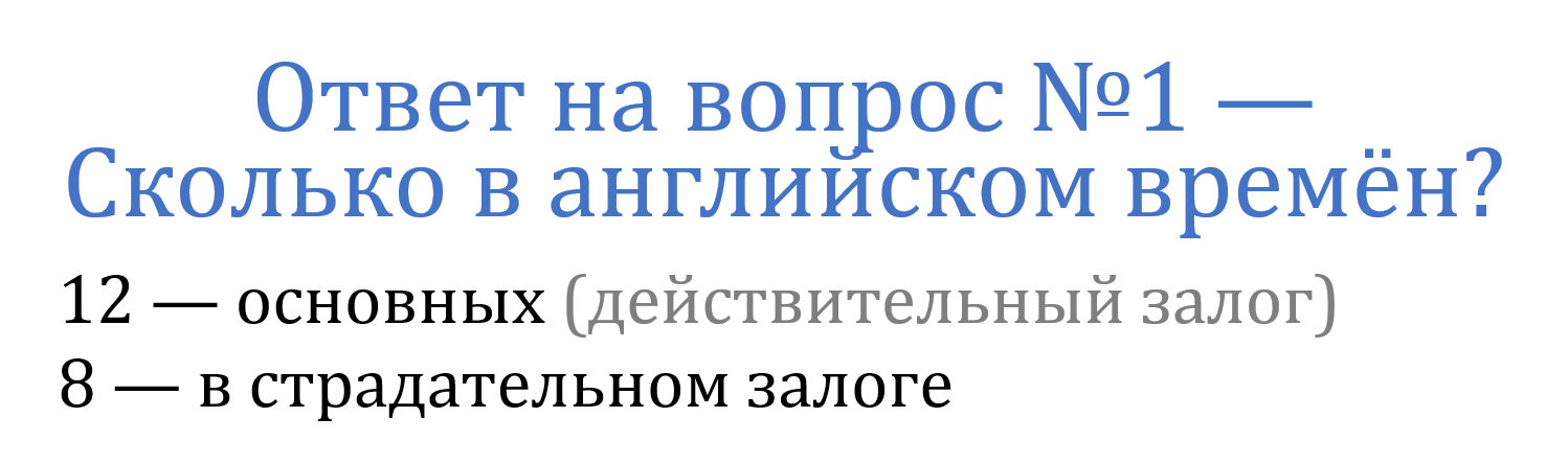 Через час-два вы будете свободно ориентироваться во временах и в действительном, и в страдательном залоге. Будете знать, как формируются вопросы и отрицания в разных временах.