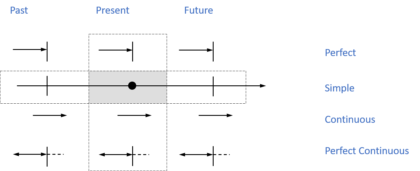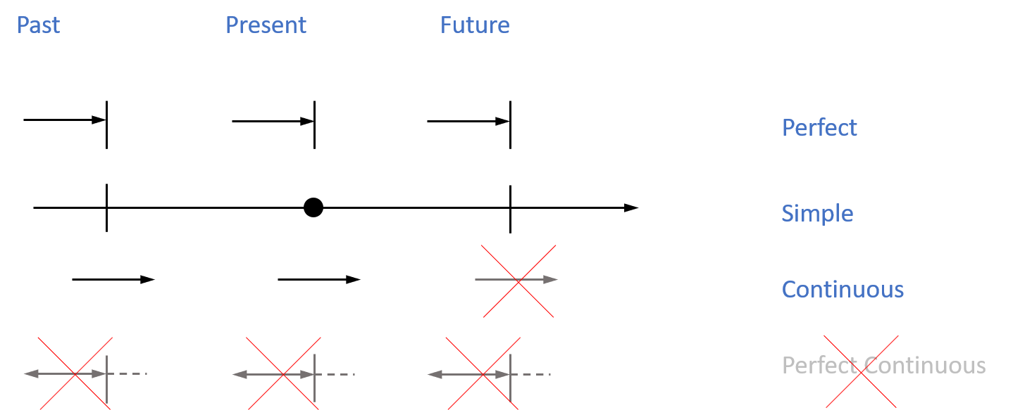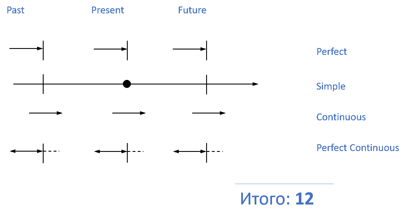 «Экстремисты» от лингвистики вообще говорят, что времён в английском всего три (настоящее, прошедшее и будущее), а остальное – «аспекты», «структуры» и «лингвистические формулы». Отчасти они правы…