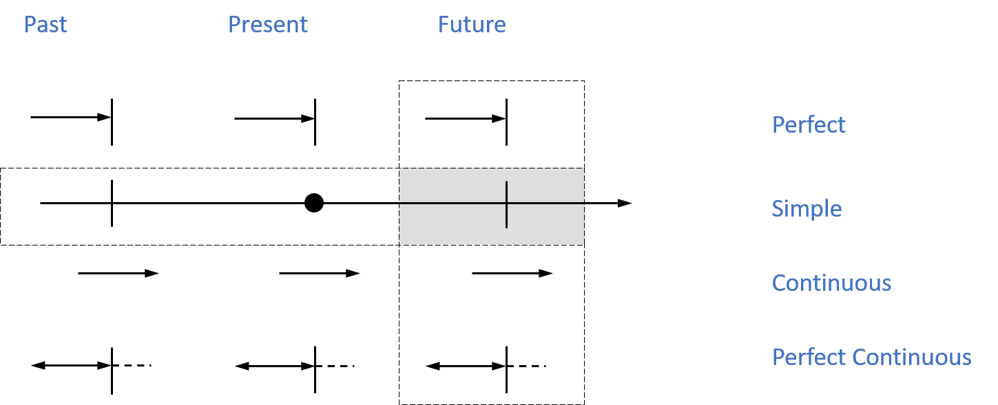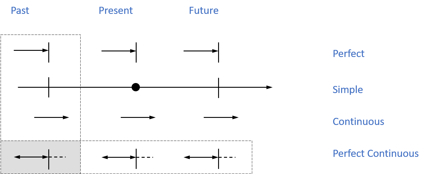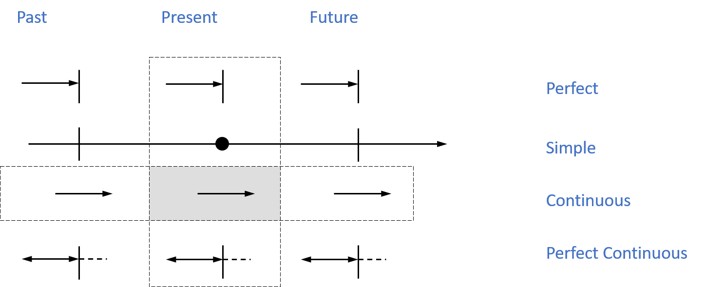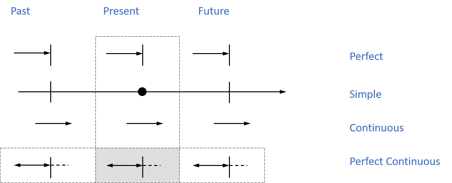 «Экстремисты» от лингвистики вообще говорят, что времён в английском всего три (настоящее, прошедшее и будущее), а остальное – «аспекты», «структуры» и «лингвистические формулы». Отчасти они правы…