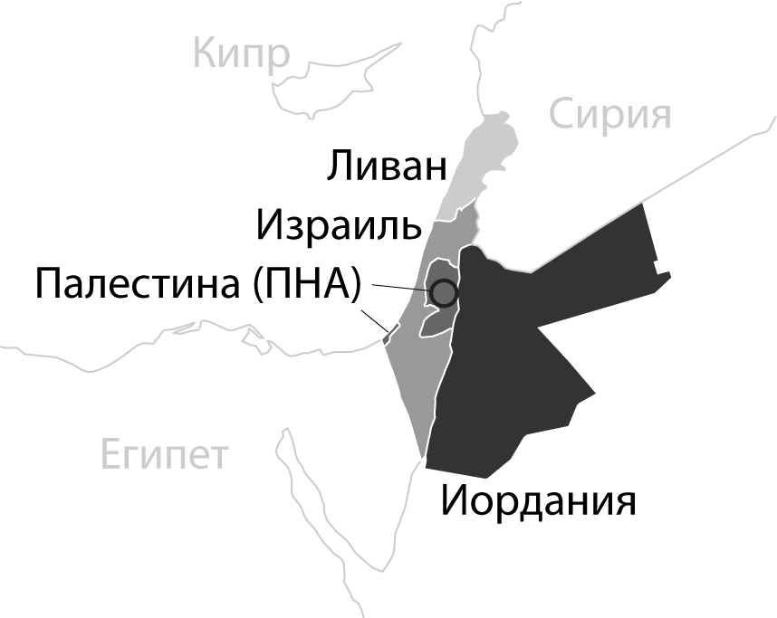 Израиль и ПНА (слева – сектор Газа, справа – Западный берег реки Иордан)