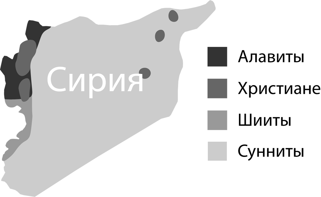 Исторически сирийцы с разными религиозными взглядами (шииты, сунниты, алавиты, христиане) неплохо уживались. Но достаточно быстро гражданская война мутирует в форму «алавиты против всех». Алавиты[51], к которым принадлежит Асад, составляют меньшинство населения Сирии (по некоторым данным, 10 % довоенного населения).