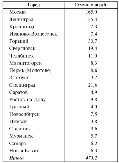 Из таблицы видно, что основная масса инвестиций в коммунальное строительство (300,4 млн руб. из 473,2) шла в столичные города, тогда как вложения в коммунальную инфраструктуру остальных ударных городов были на порядок меньше. Что говорить о не попавших в этот список населенных пунктах.