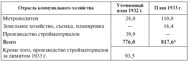 Капиталовложения в коммунальное строительство на 1933 г. по отраслям, млн руб.[155]