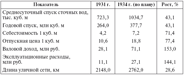 Тем не менее в последующие годы вложения в строительство новых водопроводов и расширение старых росли непрерывно. Причем наибольший рост (почти на 75 %) дал 1932 г.: с 43,5 млн руб. до 75 млн. Далее вложения в водопроводное хозяйство демонстрируют значительно меньший прирост – 81 млн руб. в 1933 г. и 82,8 млн в 1934 г.