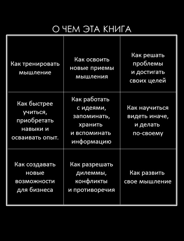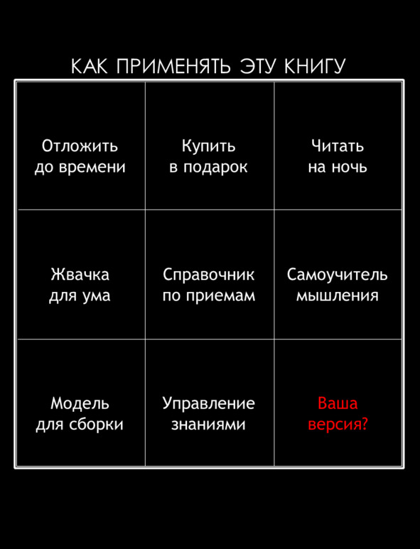 к.т.н. Алексей Ерпылов(старший менеджер Фонда «Сколково») yerpylov@gmail.comIII. «Эта книга – отличное дополнение к инструментам и методам, которые люди регулярно используют при решении задач в повседневной жизни и в бизнесе. Рекомендую ее всем, кто занимается развитием своего бизнеса»