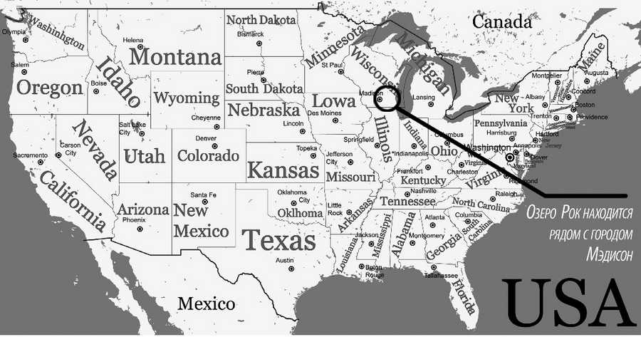 Озеро Рок расположено в юго-восточном Висконсине, США